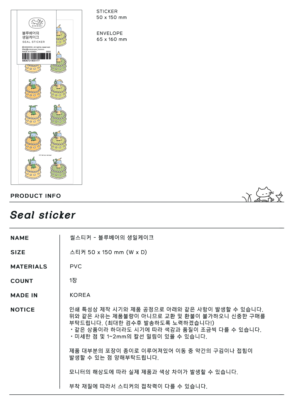 [미니모니] 블루베어의 생일 케이크 씰스티커