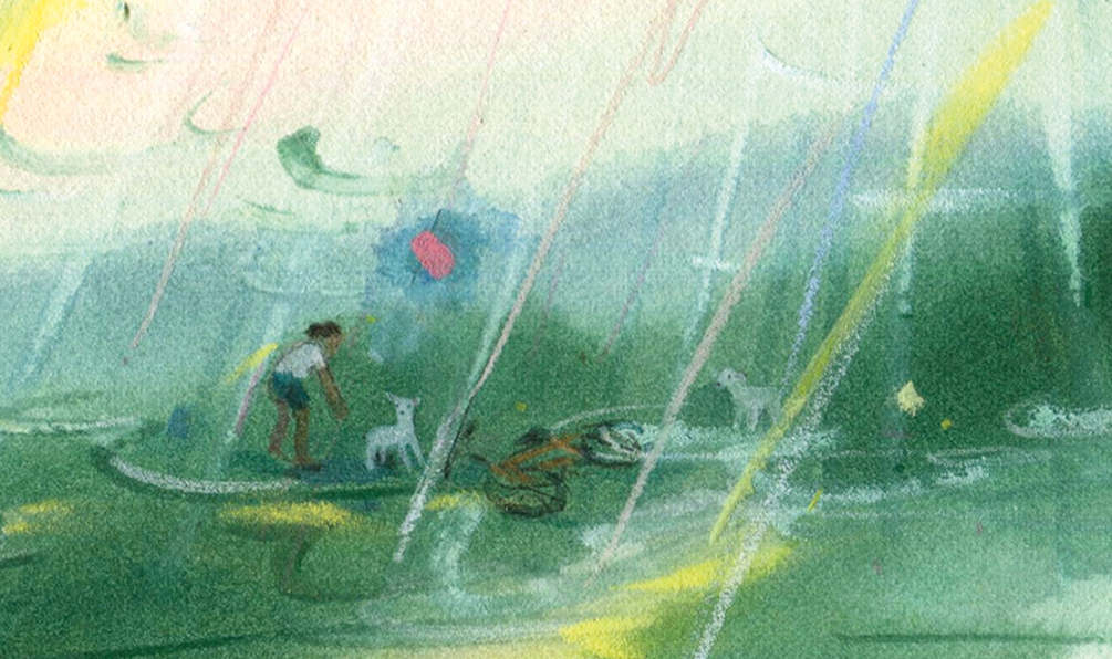 소낙비, 양 두 마리, 넘어진 자전거, 마음.