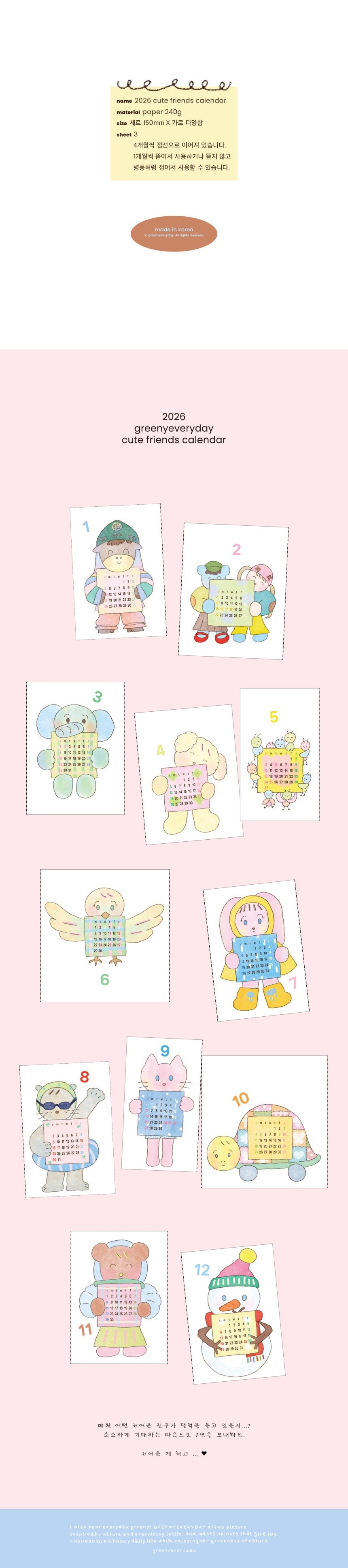 [그리니에브리데이] 2026 귀여운 친구들 Calendar