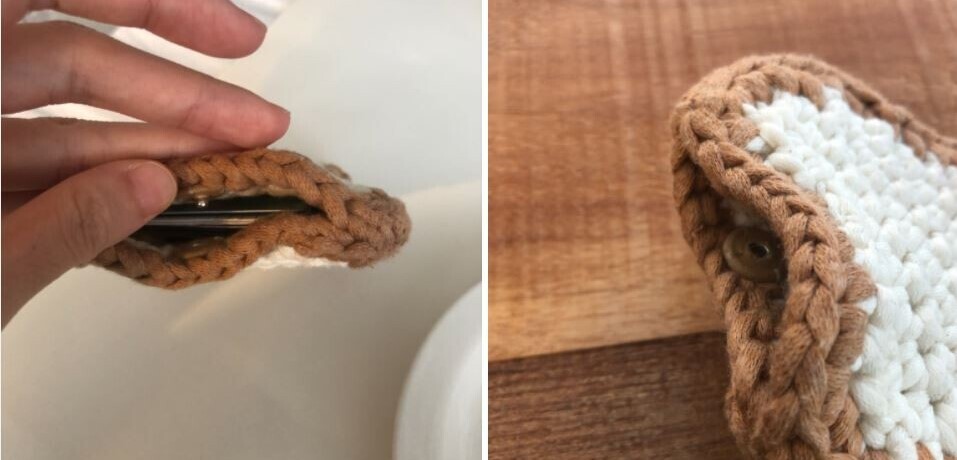 안전하게 입구 부분에 똑딱이를 바느질했어요.